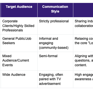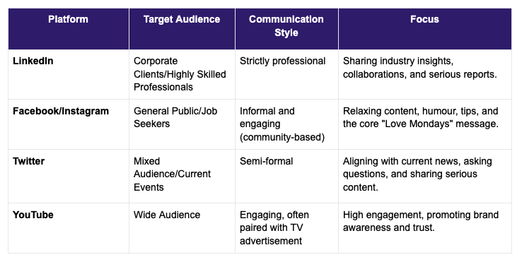 • Simultaneously, they maintained an informal, relaxed brand ('Recruitment') focused on the general public.